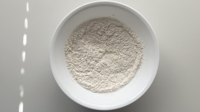- In a large bowl, whisk together the flour and baking powder.
