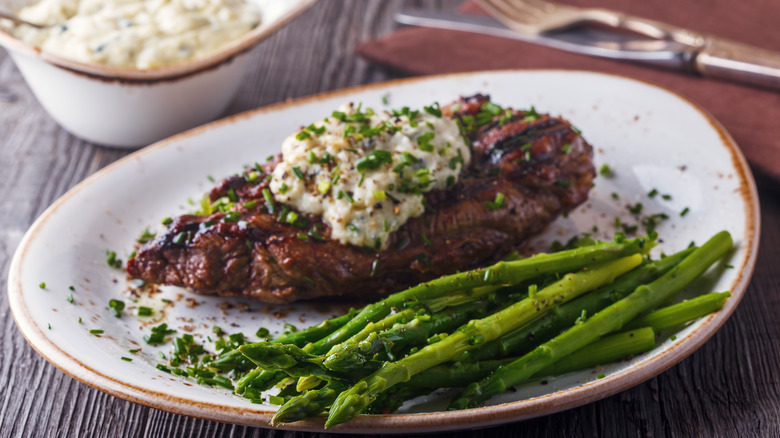 It only takes minutes to combine blue cheese, cream, and Worcestershire sauce into a flavorful blue cheese sauce. Tasting Table recipe creator Leah Maroney uses butter and garlic as an aromatic foundation to start a blue cheese sauce. After heating a pan and frying the garlic, add cream and sprinkle in chunks of blue cheese. After the blue cheese breaks down, add a dash of Worcestershire sauce and bring the mixture to a low boil for three minutes to integrate the flavors and thicken.