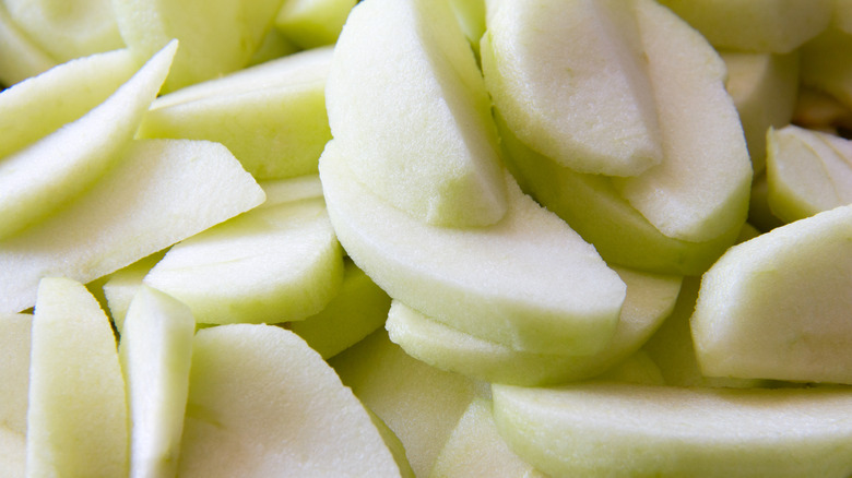 The star of any apple tarte tatin is the apples — it's in the name, after all. A well-made apple tarte tatin features perfectly tender, juicy apple wedges. To ensure this, it's crucial to cut the apples to the correct thickness. If you cut them too thick, they'll take longer to cook and turn tender, making them harder to eat, and you risk having a greater proportion of fruit to pastry than desired. But it's also important not to cut the apples too thin as you'll risk not having enough of a fruit-to-pastry ratio and, as Palazzo warns, having them overcook and turn mushy. "Sometimes, if the apples are cut too thin, they can get mushy while baking, resulting in a caramelized apple sauce on top of your tatin."