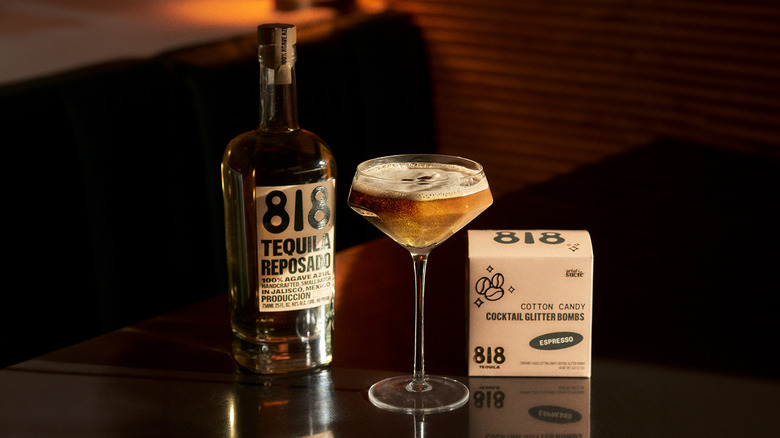 Espresso martinis are one of the hottest cocktails in the world right now, and they're about to get even trendier with a little help from Kendall Jenner. The reality star and model joined the ever-growing list of celebrities with liquor brands when she launched 818 Tequila in 2021. That release has overlapped with the rise of the espresso martini, which was once considered a fun but dated relic of the 1990s but has now seen a resurgence to become one of the most ordered cocktails in America. The martini is normally made with vodka, but Jenner and 818 are not content to let a booming trend pass them by. Instead, as revealed by a press release sent to Tasting Table, 818 has created a recipe for a tequila version and teamed up with Art of Sucre on a special glitter bomb that turns the martini into an entirely new drink.