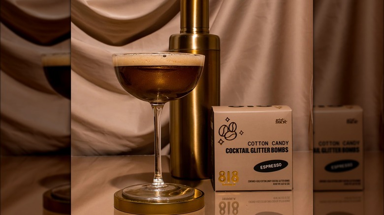 The gold in the espresso martini glitter bomb comes from the color of the glitter. Dropping the bomb into the drink will transform the normally dark brown cocktail with a shimmering, deep golden hue, perfect for a holiday celebration. The cotton candy mix-in should also add a little extra sweetness to your espresso martini, as the 818 recipe calls for only 2 ounces of its tequila and 1.25 ounces of chilled espresso or cold brew in addition to the glitter bomb. Incorporating the Gold Espresso Glitter Bomb is as simple as stirring it in once you've shaken your martini with ice and poured it into your glass. 818's suggested liquor for the martini is its reposado tequila, which should lend some additional depth and complexity to the cocktail beyond the express flavor.