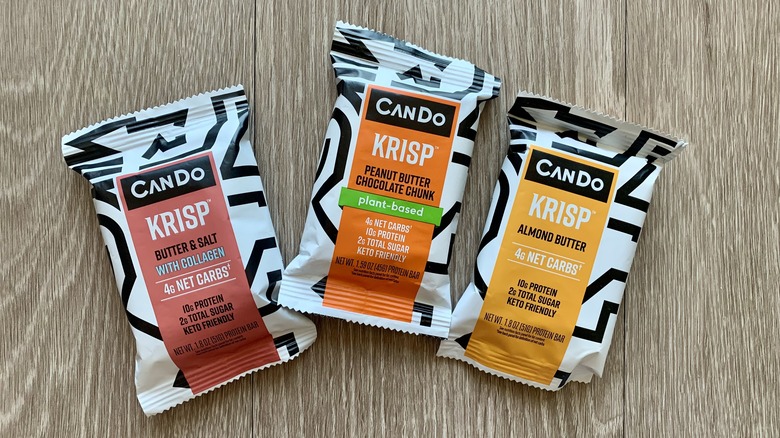 Keto Krisp is an outlier on this taste test. Not for obvious reasons — protein bars are nothing new, and other brands, like Think!, have Keto options in addition to their regular bars. Some, like Mosh, have plant-based options, too. It's an outlier because these are shaped less like bars and more like sticky little squares. The "Krisp" in the title is on the nose since these bars tasted a lot like Rice Krispies Treats with the added bonus of 10 grams of protein.