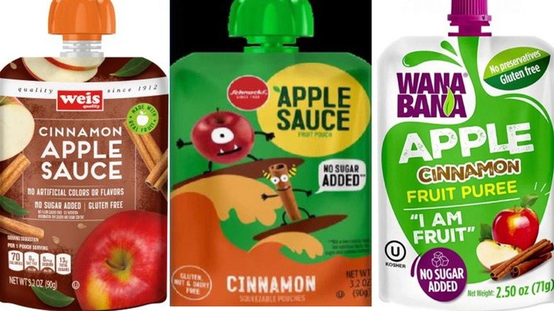 Various applesauce products are being recalled across the country due to the risk of elevated lead levels. The items include WanaBana Apple Cinnamon Fruit Puree pouches, Schnucks brand Cinnamon-flavored Applesauce pouches, and Weis brand Cinnamon Applesauce pouches. The recall comes after four children who consumed one of the affected products showed signs of "acute lead toxicity"(via the FDA). An investigation by North Carolina health officials led to the discovery of extremely high lead concentrations in WanaBana Apple Cinnamon Fruit Puree, which the state's health department established to be a potential source of exposure among the affected children.