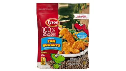 On November 4, 2023, Tyson Foods issued a recall for nearly 30,000 pounds of its frozen, dinosaur-shaped Fun Nuggets after customers sounded the alarm about small bits of metal in their chicken patties. According to the United States Department of Agriculture (USDA), the recall for "foreign matter contamination" applies to 29-ounce. bags from lots 2483BRV0207, 2483BRV0208, 2483BRV0209, and 2483BRV0210. The recalled packages have a best-by date of September 4, 2024, and the full name of the product, "Fully Cooked Fun Nuggets Breaded Shaped Chicken Patties," on the front.