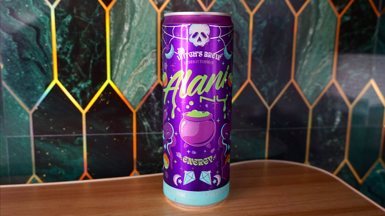 While this flavor isn't around year-round, we were lucky enough to snag one to try out. Witch's Brew is Alani Nu's autumn/Halloween/spooky season seasonal flavor, and the packaging is some of the best we've seen on any of its products. It perfectly encapsulates what we'd think a witch's brew would be, featuring a cauldron, crystals, crescent moon doodles, and purple snakes, among other fun decorative motifs. The purple color of the can is so festive, and the can makes it very obvious that this is a seasonal flavor. But what is the actual flavor, you ask? It's none other than caramel apple.