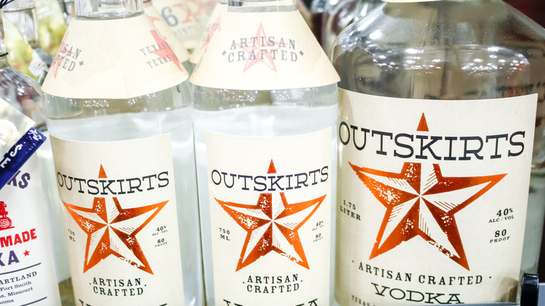 You can buy the Texas-produced vodka brand Outskirts in BevMo liquor stores for around $22 to $28 per 750-milliliter bottle, marking it as a mid to above-average vodka in terms of price. Part of the reason for the higher price on these bottles may be because the label boasts that Outskirts is artisan-crafted, and the brand is also exclusive to BevMo stores.