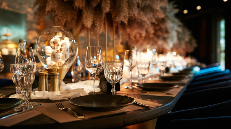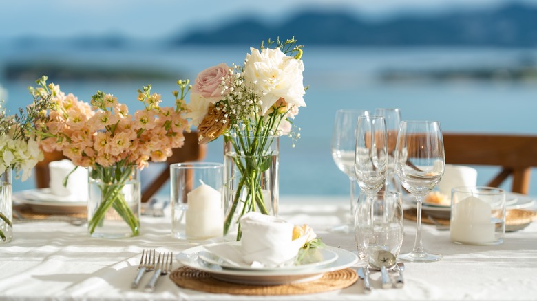 Flowers, wreaths, and other botanical arrangements are a timeless and traditional decorative element that can brighten and add a touch of elegance to any table setting. Whatever the season, there are a ton of gorgeous bouquets and arrangements that can take the table you're setting from average to absolutely splendid in no time at all. From jaunty sunflowers in the late summer and early fall to wreathes of holly around the holidays and even delicate live orchids of early spring, you simply cannot go wrong with flowers (barring allergies, that is).