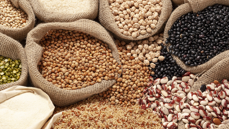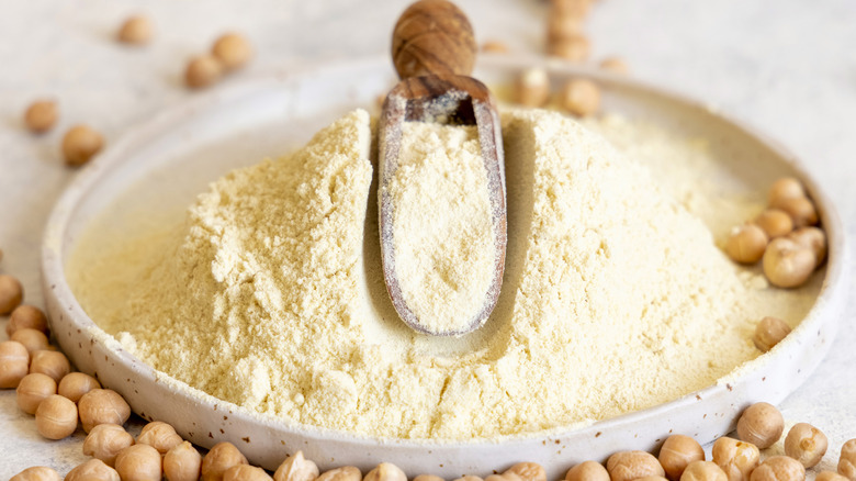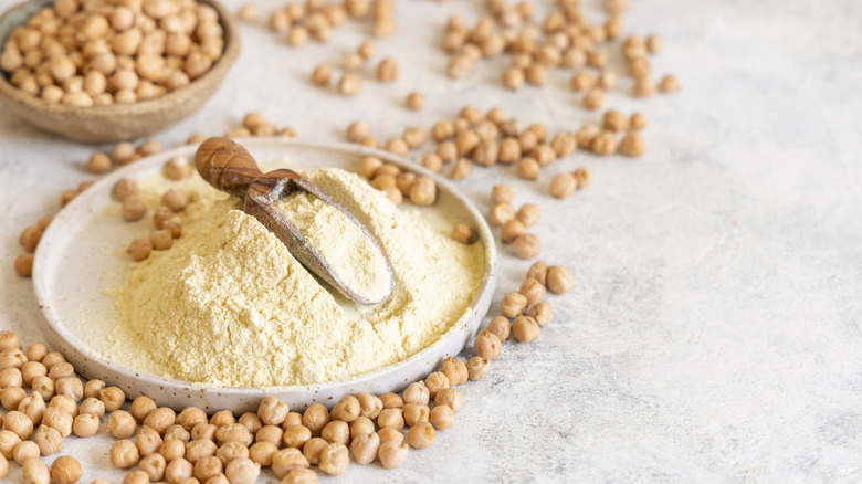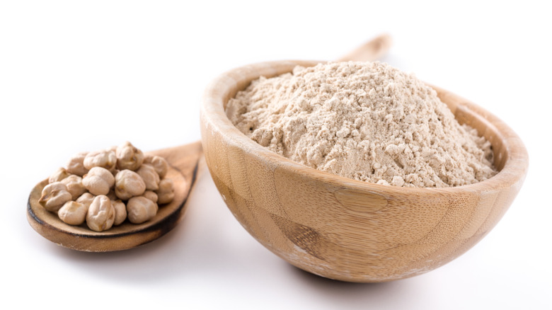 According to the Harvard School of Public Health, beans come from the "Fabaceae or Leguminosae family" and can also be categorized as legumes and pulses. Bean flour is a finely ground powder that appears in a variety of colors depending on the type of beans used to make it. This name is given to any of the end products regardless of what kind of beans are used. Many bean flours are beige, but garbanzo bean flour, for example, appears more yellow while black bean flour is generally a much darker brown. Grinding beans is not a new practice. According to Healthline, chickpea flour for example is a longstanding ingredient in Indian cuisine. Still, bean flour is seeing increased popularity and with that a heightened amount of commercial availability. Bean flour can enhance your recipes, whether savory or sweet, and provide an excellent, gluten-free alternative to all-purpose flour or cornstarch. Additionally, these flours will add fiber, protein, and a host of nutrients to your dishes whether soups and stews or baked goods.