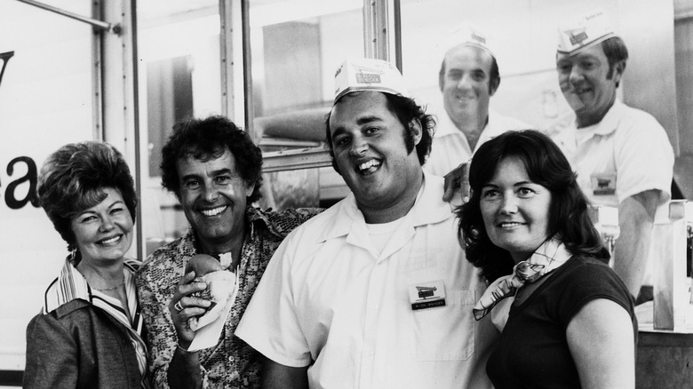 According to "The Ins-N-Outs of In-N-Out Burger," the Snyders saw a lot of former G.I.s and their families moving into the area in order to be able to commute to Los Angeles from a quieter (and cheaper) neighborhood. Harry Snyder thought that these commuters would want delicious food that they could order and pick up fast, as well as eat in the comfort of their cars. Turns out, he made a solid bet, as the small drive-thru stand sold over 2,000 burgers in its first month and became the first official store of the food giant now known as In-N-Out.