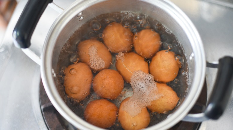 Famed French chef, author, teacher, and cooking show pioneer Jacques Pepin shared a recipe for seared hard-boiled eggs in his 2011 cookbook, "The Essential Pepin," as well as a live demonstration from the PBS kitchen in 2020. Pepin calls the dish "Oeufs Jeanette," or "eggs Jeanette," after his mother, whom he credits with introducing the dish to him growing up. Searing is a simple cooking method that involves cooking food in a saucepan with oil over super-high heat. The hot oil helps cook food rapidly while the hot pan creates a crispy browned or charred exterior.