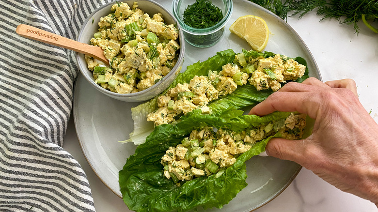 How should you serve the tofu egg salad?