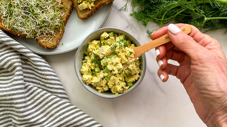 Serve the tofu egg salad as desired.