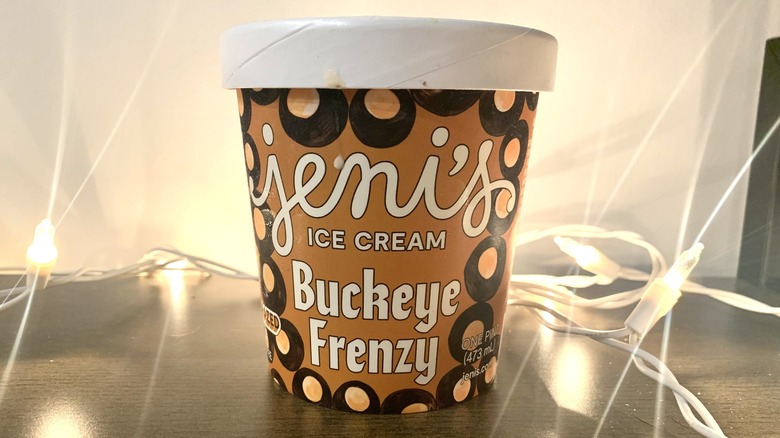 What is a "buckeye"? Basically, it's a chocolate-coated ball of sweetened peanut butter and one of the simplest but most crowd-pleasing candy at a holiday party. Jeni's uses these confections as the inspiration for the Buckeye Frenzy ice cream. But, as per usual with Jeni's, there's a bit of a twist. Instead of just going with the typical, expected chocolate ice cream with peanut butter swirls, Jeni's inverted the classic.