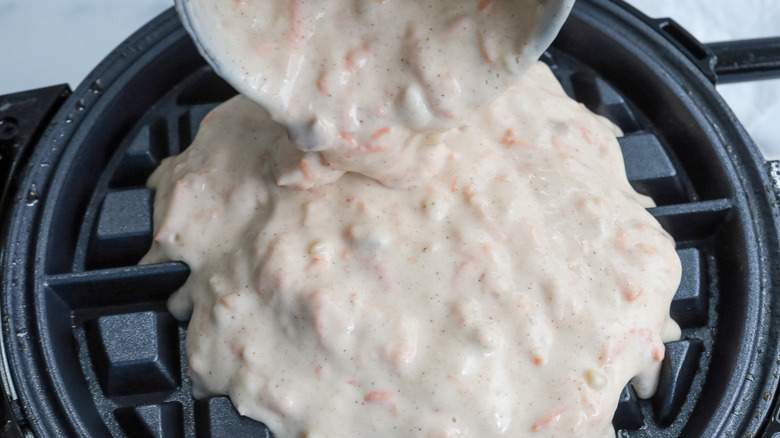 Waffles are typically a blank slate — they have a pretty neutral base, so you can add fruit, syrup, spices, or really anything you'd like to your heart's content. These carrot cake waffles are similar in that you can customize them, though you don't want to stray too far from the original formula. One of the easiest swaps would be to switch up the nuts; even those who aren't fans of walnuts can get in on the fun. "You can definitely swap in a different type of nut, pecans would be really good in these for example," Morone says. "Or you could omit the nuts completely if you don't like them or have an allergy."