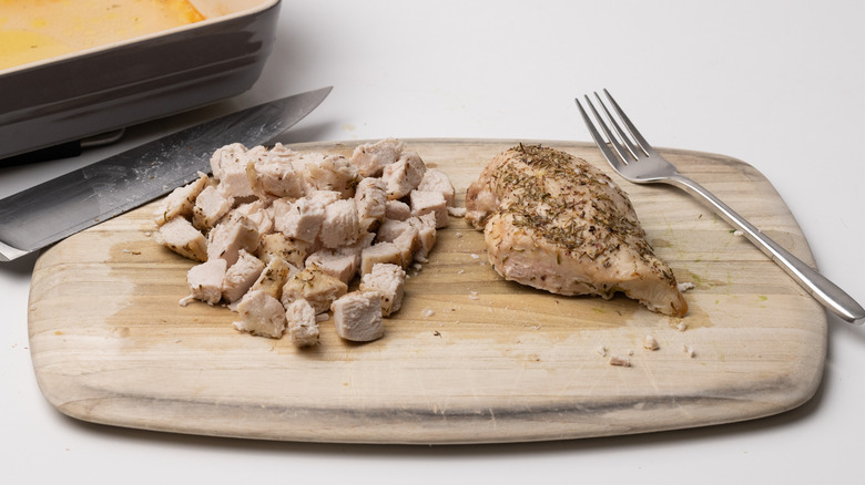 - Chop the chicken into bite-sized pieces.