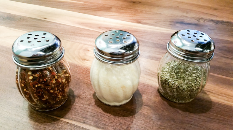 There's nothing gimmicky or flashy about these stalwart pizza toppings, but they're classics for a reason. Yes, some chains have hitched their wagons to signature condiments, such as Papa John's garlic sauce, but parmesan, red pepper, oregano, and garlic powder are ubiquitous at pizza parlors for a reason.