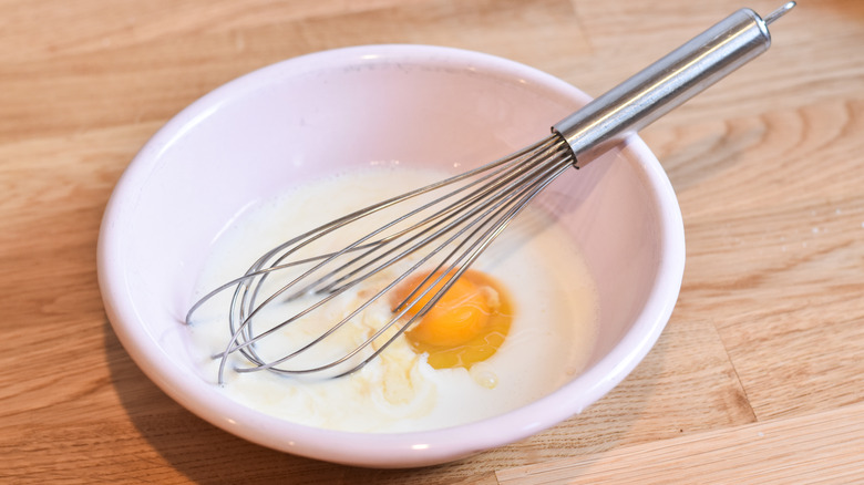 - Combine the egg, 1 cup buttermilk, and vanilla.