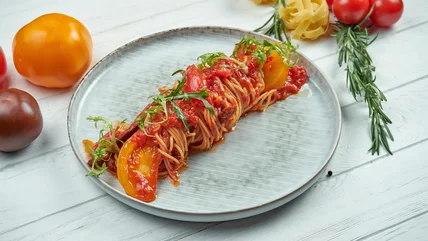 Fleshy and flavorful, plum tomatoes tend to have an oblong shape and come in a wide variety of sizes. Aside from their lower water content and dense flesh, they're easy to peel and tend to have few seeds, making them perfect for sauces of all kinds. Plum tomatoes are widely available, so you shouldn't have trouble finding them in the grocery store.