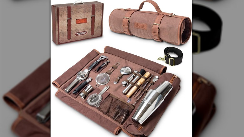 We like that Barillo's bartender bag is well-reviewed on Amazon (a 4.7 rating when we checked) and is produced by a respected barware brand. The stainless steel elements are organized in a waxed canvas roll-away bag with a handle. The whole set appears attractive as it is made from materials that are designed to last. It's the ideal surprise for anyone looking to take mixology to the next level.