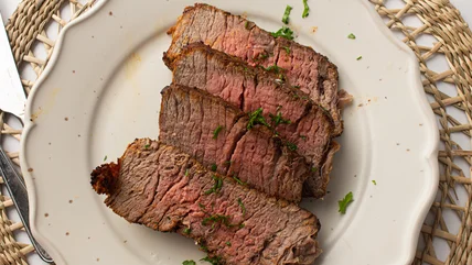 Olayinka's recipe offers some wiggle room to cook the roast beef to your desired level of doneness. Her original time suggestion of 30 minutes will produce a well-done roast beef. According to the USDA, the minimum temperature to safely eat beef is a 145-degree internal temperature. To be sure you're reaching this minimum temperature, it's recommended you use a meat thermometer. This offers you peace of mind that your beef is safe to eat and gives you more control to cook the roast to your preference.