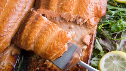 Let the hot water work its magic for a minute before you start trying to peel. You should be able to see the edges of the fish skin begin to lift and curl up away from the fish. You can then slowly peel the skin from the fish. If you feel resistance, pause and pour more hot water over the skin and resume slowly. This hack is great for dishes that require cubed or fried pieces of fish.