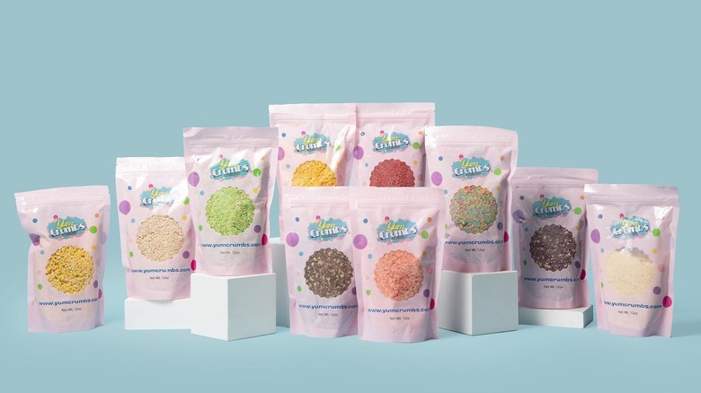 Launched in 2020, Yum Crumbs bills itself as "the most scrumptious dessert topping you'll ever find," according to its website. Offering both crumb and candy varieties in flavors like Birthday Cake, Apple Pie, and Salted Caramel, Yum Crumbs can be sprinkled over ice cream for a flavor-packed crunch, applied as a coating to chocolate-dipped fruit, or used as a convenient shortcut for bakers who want to save a bit of time topping their wares. In fact, it was baked goods that served as the impetus for the creation of the company.