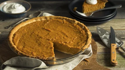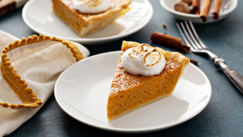 Sweet potato pie is a fantastic alternative to pumpkin pie when you're feeling all pumpkin-ed out over fall. This classic dish comes with the convenience of using canned sweet potatoes and frozen pie crust, so you can spend more time with loved ones rather than kneading a pie dough from scratch. If you have pumpkin pie spice, you can opt for that instead of adding the spices separately.