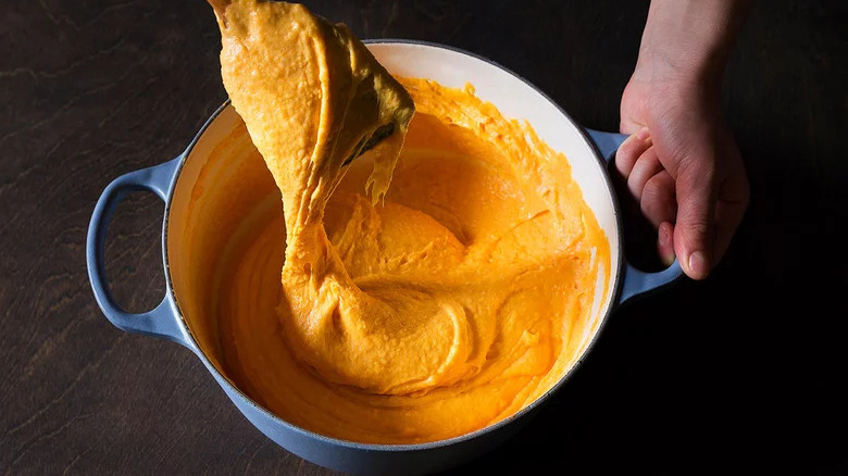 Mashed potatoes are a classic side dish, so why not integrate sweet potatoes into the mix? You can use any type of canned sweet potatoes for this recipe. However, buying them puréed simplifies the process since you won't have to do any additional mashing. It's basically ready to go. This recipe is extremely easy and a huge time-saver, making it the perfect food to whip up if you're busy cooking holiday treats or simply want a quick side dish for weeknight eats.