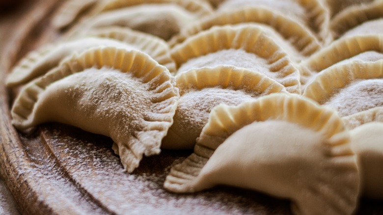 As for how to put revamped steak to use, it makes a great filling. Feature shredded meat as the main ingredient inside a baked casserole, cheesy quiche, or shepherd's pie. Otherwise, add it to loaded chimichanga, stuffed peppers, or savory crêpes. You can even use the steak to make dumplings. While the shredded beef is a match for larger stuffed treats like empanadas or Chinese steamed buns, the blitzed beef is best worked into ravioli, gyoza, and pierogi. With endless means of transformation, you'll never look at overcooked and burnt steaks with disappointment again.