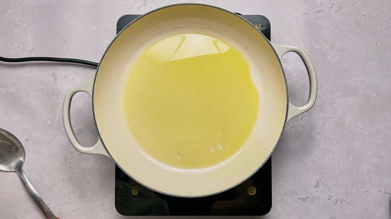 - Heat oil in a deep skillet or Dutch oven over medium heat.