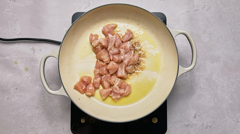 - ½ pound boneless, skinless chicken breast, cut into ½-inch pieces