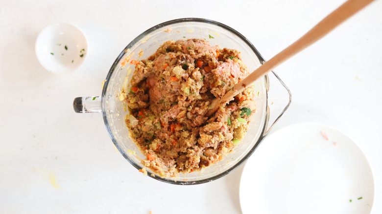- Place the ground turkey and chopped parsley in the bowl and mix to combine.