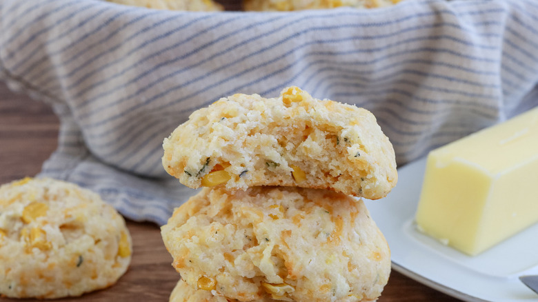 There's nothing better than a freshly baked biscuit, and even better yet when it has an enhancing ingredient baked right into it — like sweet corn, for example. While a plain old biscuit certainly has its place in this world, there's no denying that it can sometimes be a bit bland and unexciting. Well, you certainly don't have to worry about these buttermilk sweet corn biscuits being run of the mill — as recipe developer Jessica Morone says, "I love these biscuits because they are savory but a little sweet, they are incredibly tasty, and I love how easy they are to make."