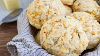 Buttery, cheesy, and a little bit sweet, these corn-filled buttermilk biscuits are a perfectly novel take on the classic.