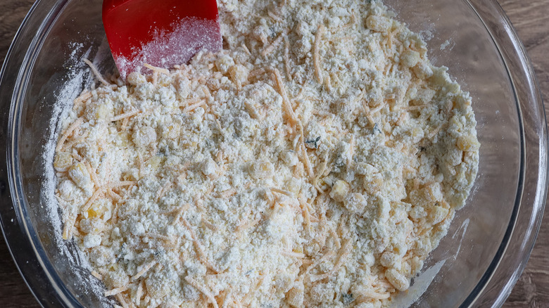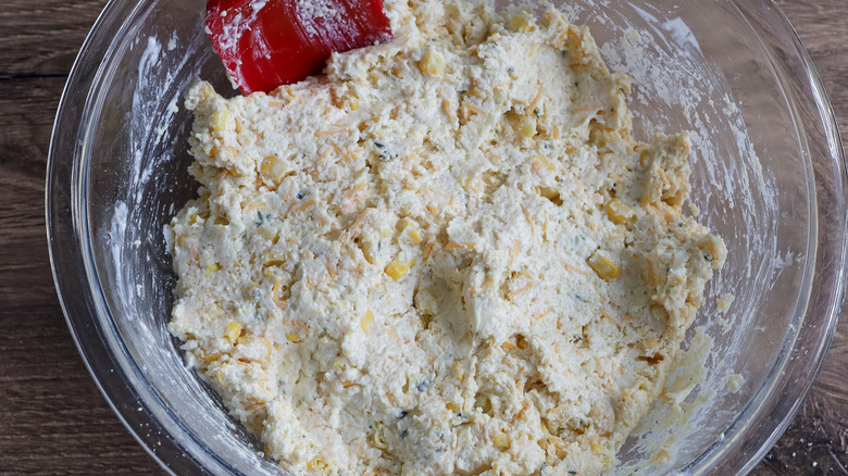 - Transfer the flour mixture to a large bowl. Add the corn, cheddar, and thyme and mix until evenly incorporated.