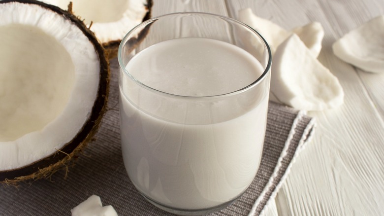 However, since coconut milk doesn't come sweetened, you'll have to do that part yourself by adding a sweetener to the coconut milk. For 1 can of coconut milk, add in ⅓ cup of your preferred sweetener, such as sugar or maple syrup. To prepare this replacement, you'll need to put the coconut milk and sweetener in a saucepan and bring it to a boil, then reduce the heat to medium-low and let it simmer for around 45 minutes, whisking about every five minutes.
