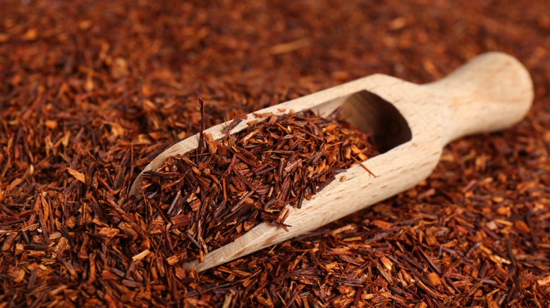 According to chef Pierre Van Zyl, a number of "forgotten" traditional ingredients are now "being researched and used a lot more" in modern South African cooking — a list that includes rooibos. This native bush's leaves have been used as a unique tea for centuries. It is usually dried, crushed, and then fermented (which creates its red color and iconic flavor). With a sweet vanilla and caramel profile to go with its robust scent, rooibos leaves can add dimension to sweets and desserts.