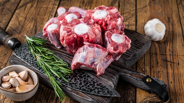 Chicken feet, called "runaways," according to Van Zyl, can be braised in a "flavorful liquid" until it "becomes very soft and gelatinous." Additionally, oxtail and ox tongue are considered delicacies. Ox tongue might be brined and braised (and served with sweet mustard), while oxtail is often the main protein in a dish called potjiekos. Named after the potjie (or the cast iron pot the dish is cooked in), the ingredients are layered based on cooking time. The meat is usually browned first, and any quick-cooking veggies are added last. Just remember the number one rule of potjiekos: never stir!