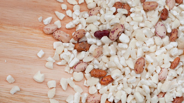 Not unlike corn meals you'd find at an American grocery store, maize meal is available in a variety of textures in South Africa. Samp, for instance, is made from white corn kernels, which are dried, then very coarsely cracked or chopped. Since samp "needs to absorb a lot of moisture," as described by Pierre Van Zyl, it's best to soak it before cooking. One popular use is in the hearty, slow-cooked stew called samp and beans.