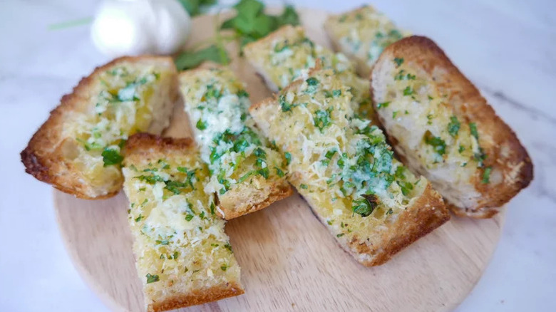 After you eat a plate of lasagna, you may be left with a puddle of sauce and cheese left on your plate. Why dump it down the garbage disposal when you could enjoy that little bit of flavor that's left on your dish? That's where some garlic bread comes in handy.