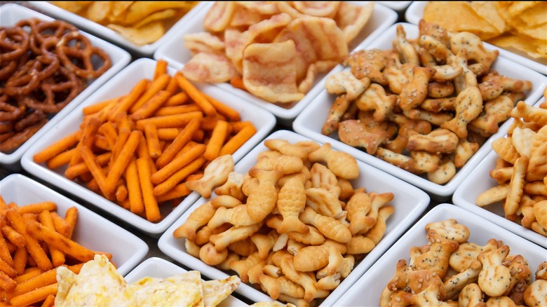 Everybody has their own favorite components when it comes to snack mixes. Some people go all-in for the rye chips, while some eat around them. Others gravitate toward pretzels, while some are all about cheese-flavored snacks. Putting together a snack mix bar lets everyone assemble the snack mix of their dreams. Keep it nut-free if you have concerns about possible allergies, but go to town with a selection of chips, snack crackers, and pretzels.