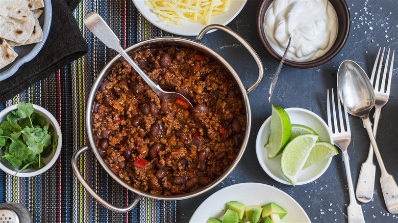 Keep your chili on the mild side, and let those who like it spicy control the heat level with a selection of hot sauces and slices of jalapeño. Hunks of fresh cornbread and crunchy corn chips pair well with hot chili, but you don't need to provide much more. For adult parties, plenty of cold beer is the perfect companion to a chili bar, or fill an ice bucket with Mexican Coke and Jarritos for non-alcoholic sipping.