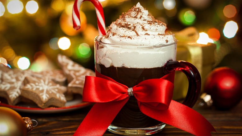 You can provide a selection of edible stirrers, such as Pocky, churros, Pirouette cookies, and candy canes. Chocolate and caramel sauces are dreamy additions for topping whipped cream, and for adults, you might set out some rum, whiskey, or flavored liqueurs. For inclusivity, have a carafe of hot water and some alternate selections, such as sugar-free cocoa and decaffeinated teas. A plate of cookies, donuts, or other dunkable snacks is a fun bonus.