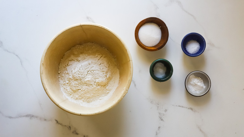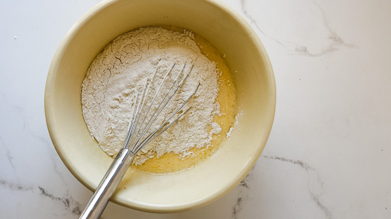 - Meanwhile, in a large bowl, whisk together the flour, granulated sugar, baking powder, salt, and baking soda.