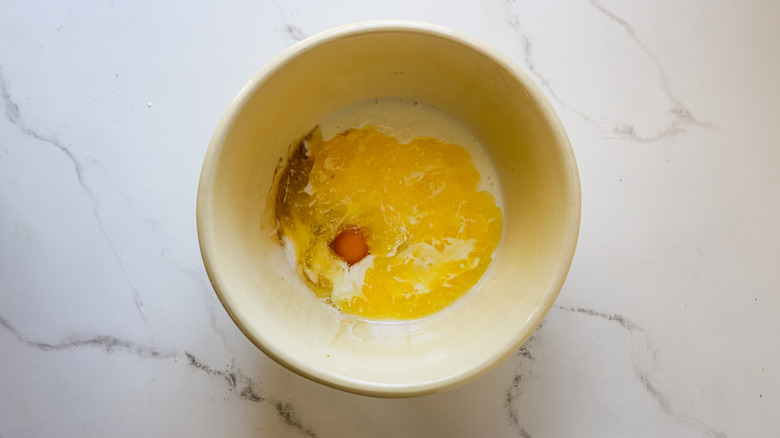 - In another bowl, whisk together the buttermilk, butter, eggs, and vanilla.