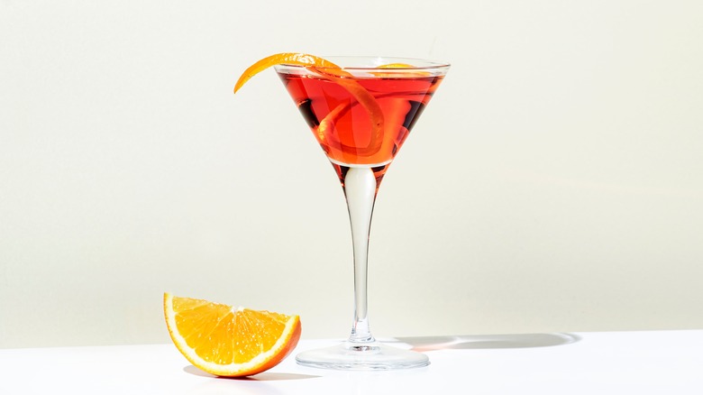 With rum and semi-sweet vermouth as your drink's base, add a spoonful of curaçao liquor (Duff uses Cointreau) and half a spoonful of grenadine. Then, mix those ingredients with ice. Luckily, you don't have to worry about your drink tasting too dry. Thanks to the semi-sweet vermouth, your El Presidente will come across perfectly balanced with both bitter and floral notes that complement one another. Cucielo Bianco, for example, promises the flavors of maraschino cherries, bitter orange, and raisins — each of which complements everything that goes into your El Presidente.