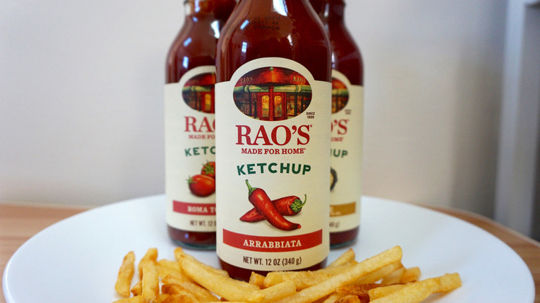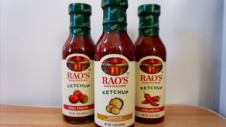 The company was actually purchased in August 2023 by Campbell's Soup, which is definitely something to note. Rao's pasta sauce jars can typically be found in grocery store aisles for anywhere between $8 to $10 — much more than your typical pasta sauce. But despite the lofty price tag, Rao's has found much success and garnered the love of home chefs through its tasty sauces and flavorful products. Let's take a look (and taste test) at the three brand new Rao's ketchup flavors, and see how they match up to your typical Heinz tomato ketchup.