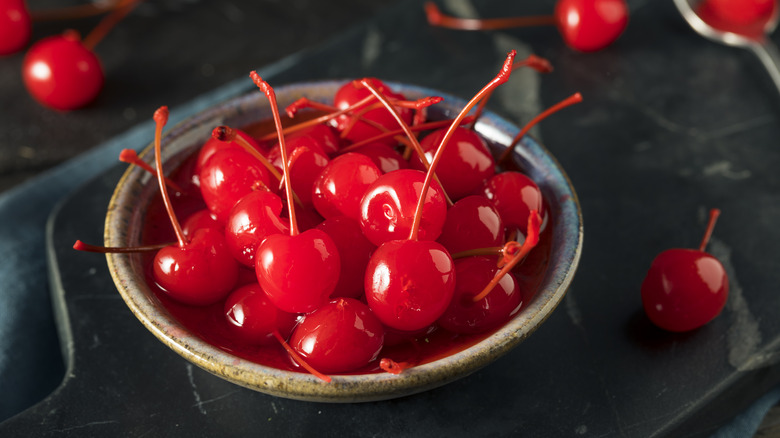 Surprisingly, there's more than one way to make maraschino cherries a grenadine substitution. The simplest one, of course, is by utilizing the liquid they're soaked in. It's most often sugar syrup, so if you like a bold sweetness, this is the ideal choice. Note that this syrup might have a thicker consistency than regular grenadine, so you might need to add a pinch of water to thin it out. Alternatively, you can muddle the cherries and extract the juice for less intense but more complex, enticing sweet notes. You can even add other fresh fruits like berries, mangos, or lime into the mix to layer in more flavors.