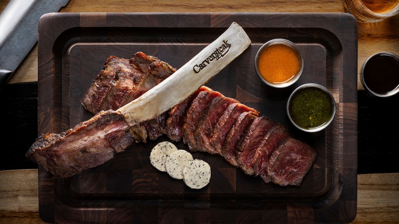 When you sit down at that steakhouse and open up the menu, chances are your eyes will go straight for the section with all those juicy steaks and chops and then immediately to the price that goes with them. And as you probably know, good meat doesn't (and shouldn't) come cheap. However, according to Bucher, if you want to enjoy a good steak without a heavy price tag, skip over anything with a bone in or on it. That list of steaks on the menu, in addition to price, is accompanied by its weight in ounces, which includes the bone. Going with the boneless cut rather than the bone-in gives you the same quality without the extra ounces.