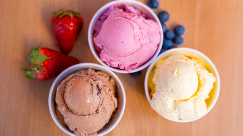 Since pound cake has a pretty simple flavor, this could be the perfect opportunity to use strong ice cream flavors, such as coffee, salted caramel, or some sort of fruity flavor (cherry vanilla, strawberry, raspberry, and so on). Or, to really up the ante on sweetness, you may want to reach for chocolate chip cookie dough, cake batter, or Rocky Road. Of course, something on the simpler side, such as classic vanilla or chocolate, will also taste just as delicious.